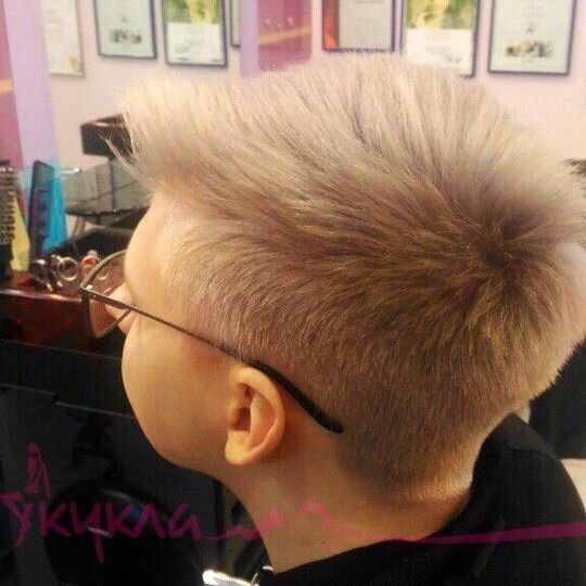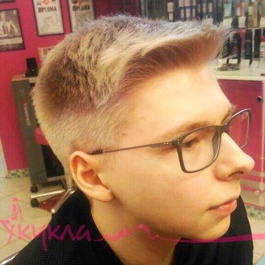 Салон высочайшего класса. Ребенок самостоятельно себя подстриг. Просто ужас! В салоне все исправили и сделали классическую мужскую стрижку.