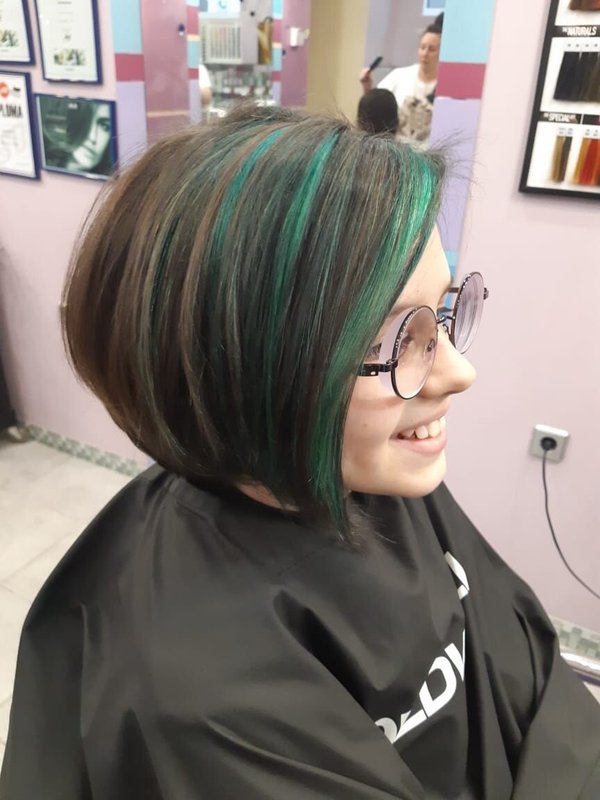 Ребёнок был в салоне, ему всё понравилось. Дочку стригут по фотографиям или по картинкам "аниме". Меня тоже стригут быстро и хорошо, пользуюсь услугами парикмахера давно, мне все нравится. Поэтому и дочь записала.