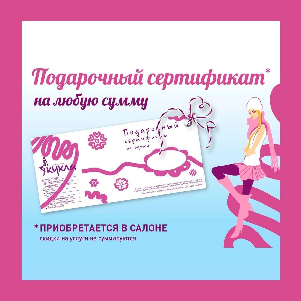 В Салоне Кукла работают проффесионалы своего дела. Маникюр сделали отлично и очень тщательно.. До этого ходила на стрижку к мастеру Любовь. Довольна результатом.. Буду ходить постоянно..