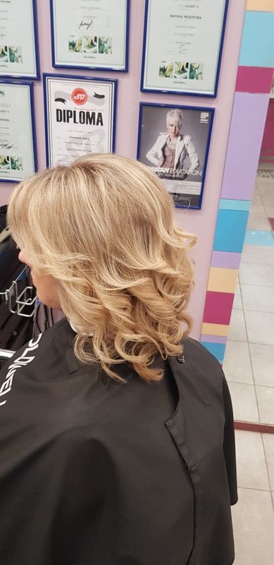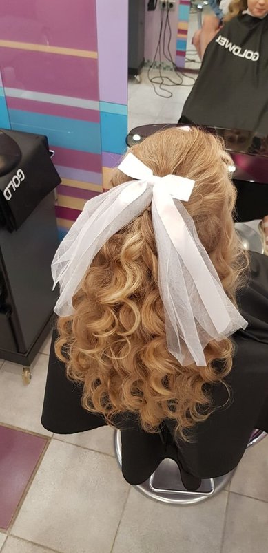 Делали дочке укладку локоны, укладка держалась, как я и хотела, до её выступления. Дочка осталась довольна, мастер с ней нашла общий язык. Она показала мастеру, и получила результат, который запрашивала.